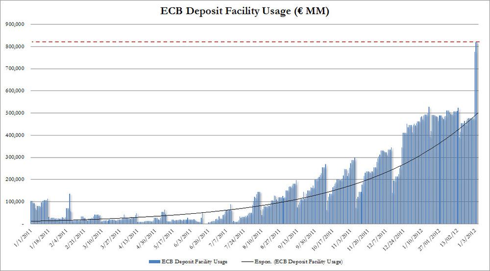 Niet onverwacht, maar toch: meer dan 800 miljard wordt er door banken weer bij de ECB teruggebracht…