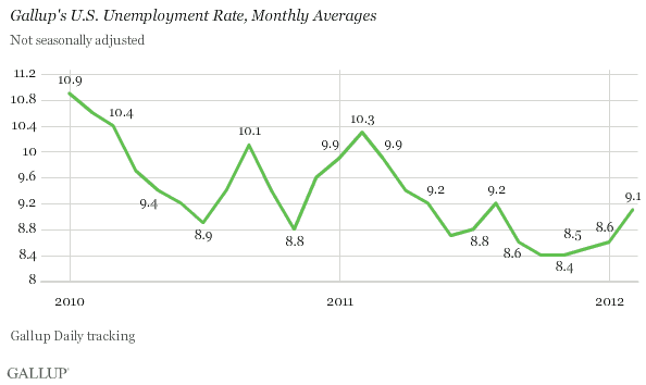 In het kader van het all-important payroll report van vandaag, is deze wel interessant: volgens een enquête van Gallup, schiet de werkloosheid omhoog…