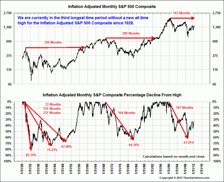 Mooie manier van presenteren van hoe aandelen het in re??le termen hebben gedaan. In de VS staan we nu al 143 maanden onder water???