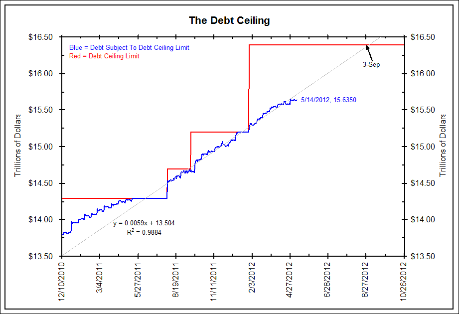 En als je het over schuld en de VS hebt, mag deze onzinnige grafiek niet ontbreken: de debt ceiling wordt op 3 september bereikt. Not.