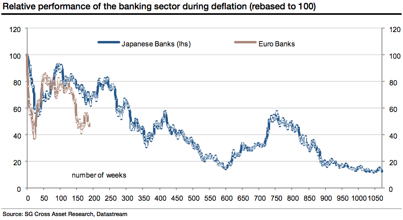 Zelfs als we in een Japan scenario zitten, dan zit er ook nog aardig wat upside in bankaandelen, als ik dit zo zie.