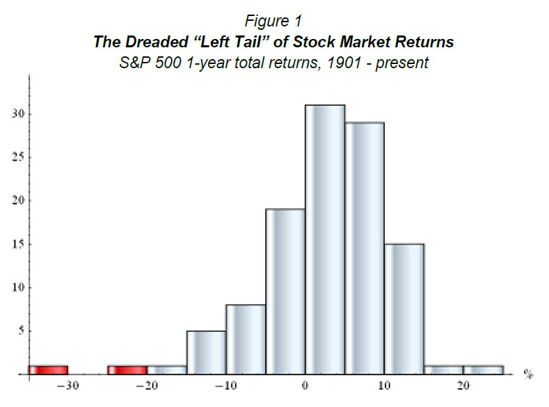 Simpel uitgevoerd en het zegt eigenlijk alles: “the dreaded left tail of stock markets return