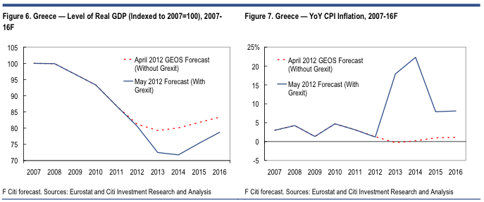 En citigroup doet een poging in te schatten hoe het de Griekse economie na een Grexit zal verlopen. Lijkt me dat ze nog wat optimistisch zijn, want wie zegt dat Griekenland nog kan handelen, met al die claims…?