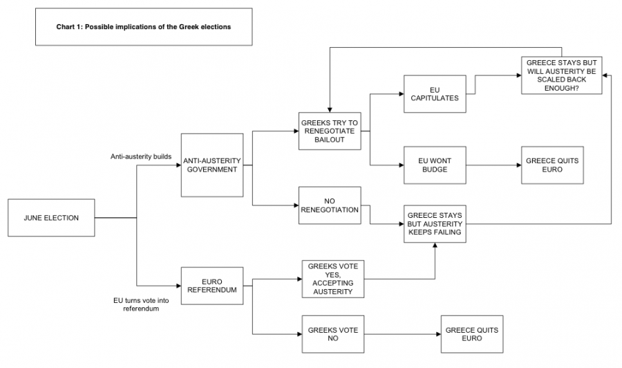 Ai!!! Ik was zo goed bezig, maar bij de derde link gaat het mis! Flow chart over wat er met de Griekse verkiezingen kan gaan gebeuren. Ik mis alleen de bank run…