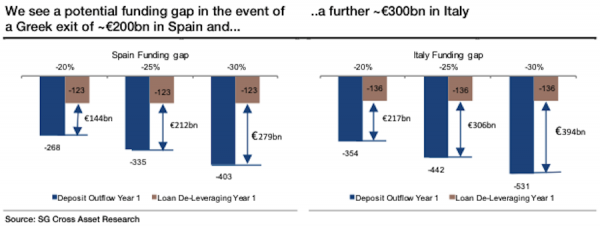 De geschatte funding die nodig is voor Italiaanse en Spaanse banken als Griekenland uit de euro stapt