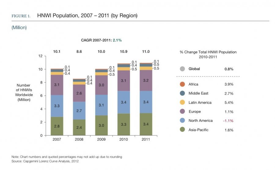 Mooie grafieken uit een duur rapport over de rijkeren (High Net Worth Individuals) van deze wereld