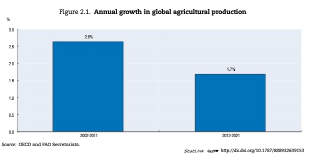 Morgen allen. De OECD/FAO Agricultural outlook. Boordevol informatie over landbouw, zoals de gedaalde productiviteit