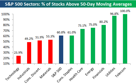 Telecom! Dat is de sector waar het momenteel het beste gaat. Dat of het gemiddelde is heel laag omdat het er heel slecht is gegaan, eerder