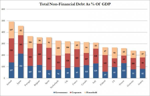 Mooie grafieken over schuld, hoewel ik de bron niet ken. De stippellijntjes zijn gebaseerd op een studie van de BIS van vorig jaar