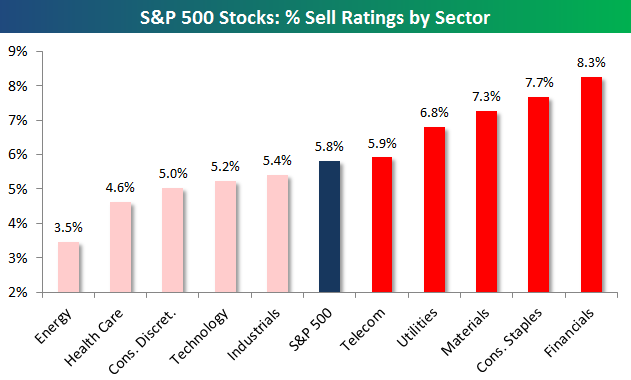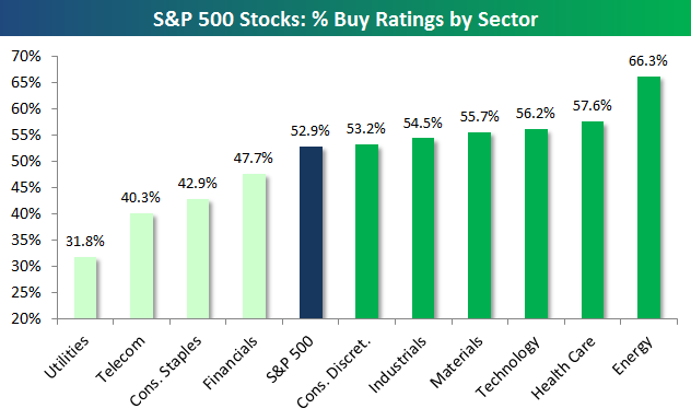 Interessant overzicht van het aantal koop en verkoop aanbevelingen per sector. Energy is de verrassende winnaar