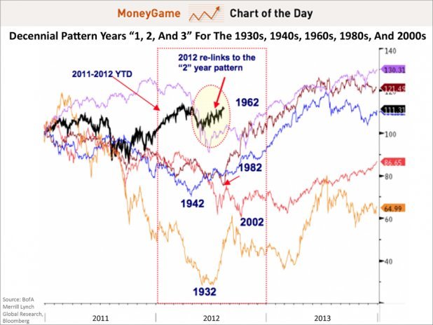Apparently, this chart shows that there are important bottoms in years ending with a two. Pity that the 2011-12 pattern appears to be the odd one out though…