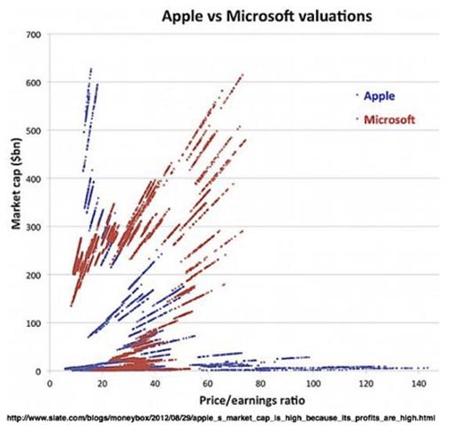 Beautiful chart showing that Apple is the biggest company ever NOT because of high valuation