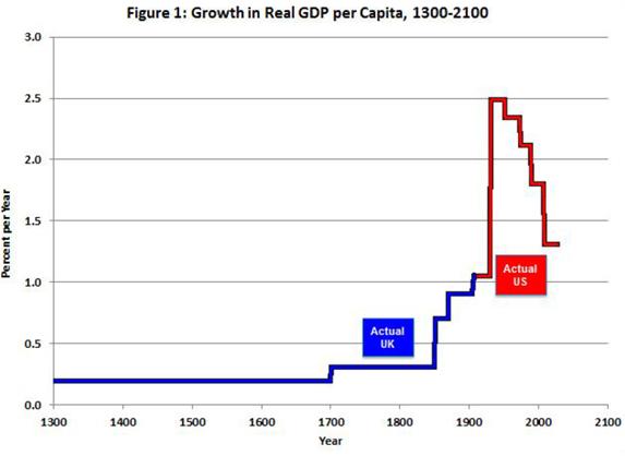 Who says that 2% productivity growth is normal? Then again, who has been measuring productivity in the UK since 1300…? Some thoughts on why future productivity growth may be (a lot) lower