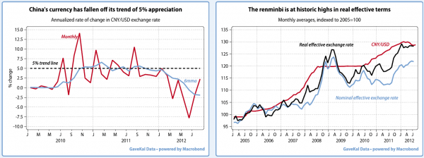Something is stirring in currency-land, with the yuan no longer on its steady 5% up trajectory???