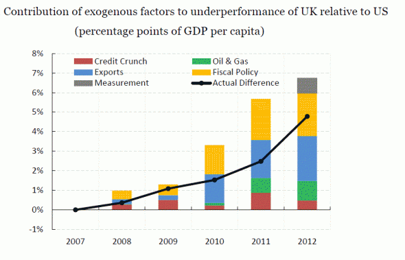 I am not sure whether this is correct, but it looks interesting: a chart trying to show where the growth difference between US and UK has come from