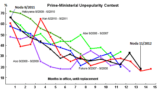 Noda almost made it as the prime minister longest in power, but alas: new elections are scheduled and Noda looks chanceless???