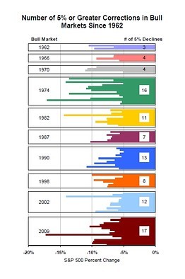 Chart showing the 5% plus corrections during each bull market, plus some ???myths??? on stock markets