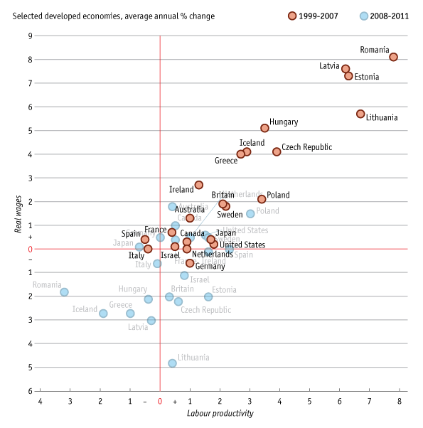 Cool but not very surprising chart on Europe: wages and productivity have dropped