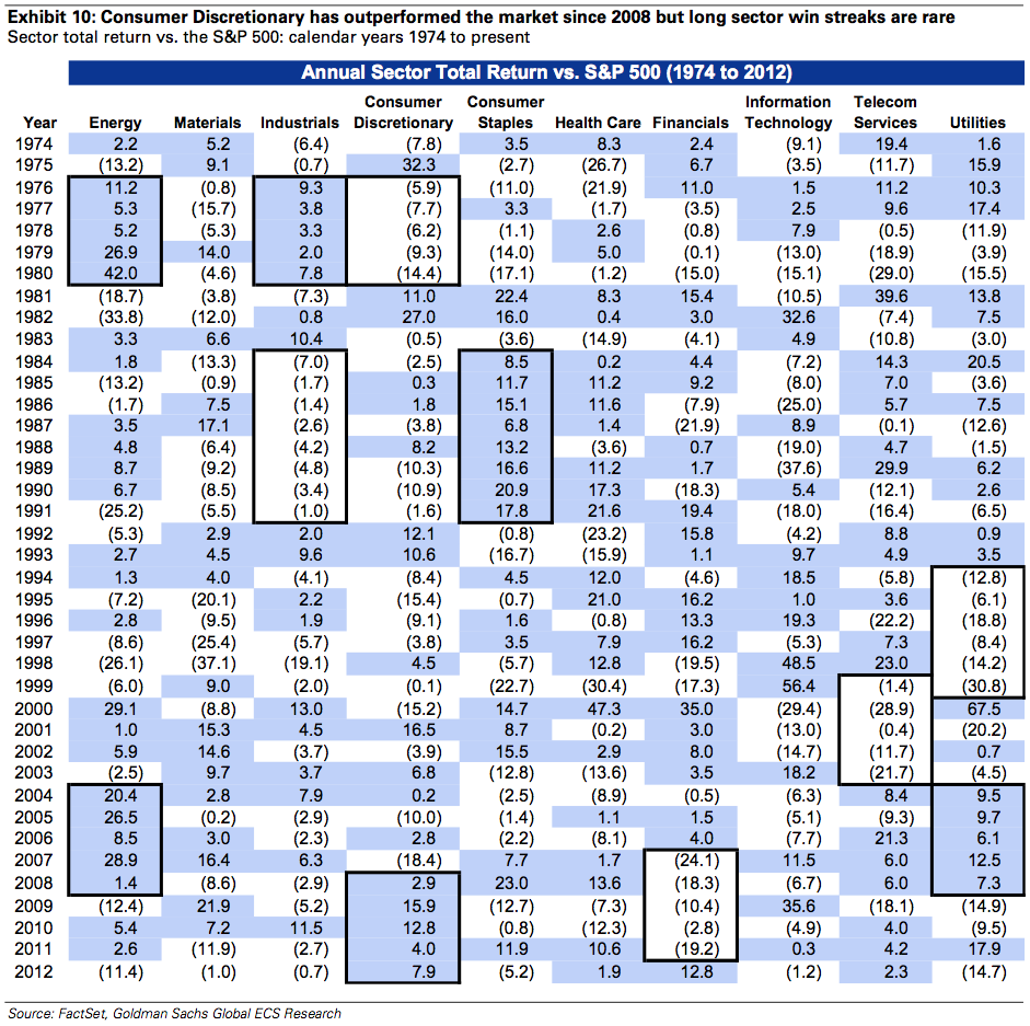 • http://www.businessinsider.com/goldmanannual-sector-returns-vs-sp-500-2013-1