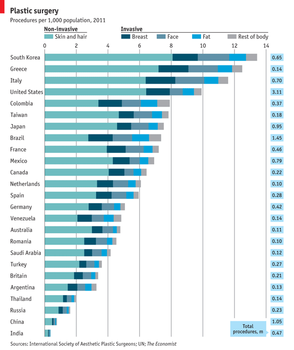 Who does the most ‘plastic’ surgery in the world. Surprisingly, not the US…