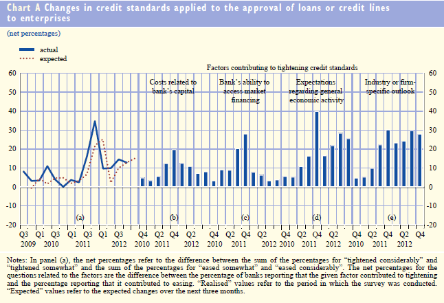 The new ECB monthly report is out, with a small recap of the Bank Lending Survey (which I have completely missed last week): credit standards tightened