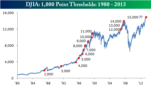 http://www.bespokeinvest.com/thinkbig/2013/5/3/djia-1000-point-thresholds.html