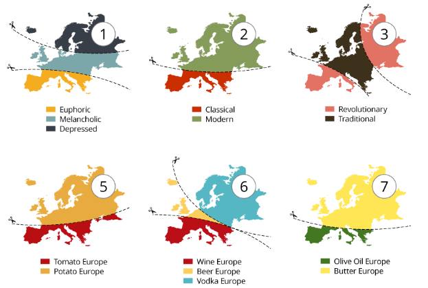 http://atlasofprejudice.tumblr.com/post/80937352126/20-ways-to-slice-the-european-continent-from-atlas