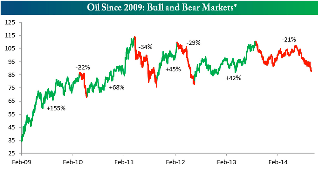 Good morning. In case you have missed it: despite tensions in the Middle East, oil prices are heading South… http://www.bespokeinvest.com/thinkbig/2014/10/8/new-oil-bear-market.html