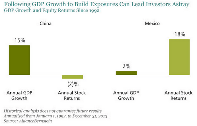 Good morning. I have said it before and I will say it again: growth does not equal stock market return. (But did Chinese stocks indeed have a negative return in the 1992-2013 era?)
