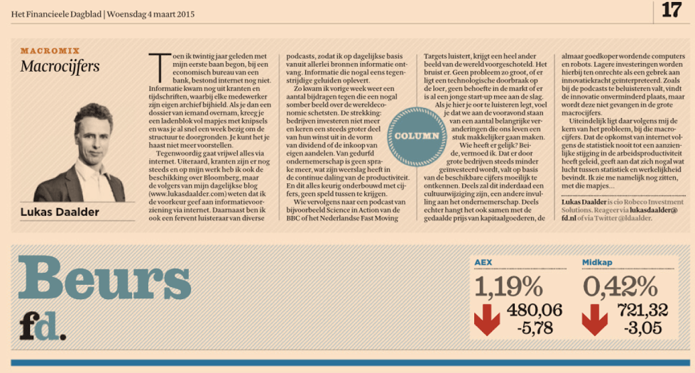 (origineel gepubliceerd in het Financieele Dagblad van woensdag 4 maart 2015)