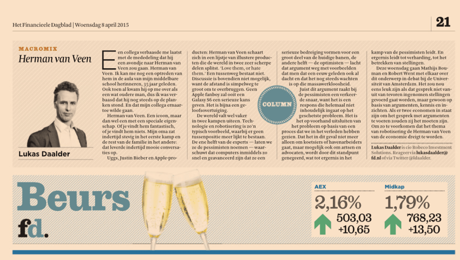 (Origineel gepubliceerd in het Financieele Dagblad van 8 april 2015)