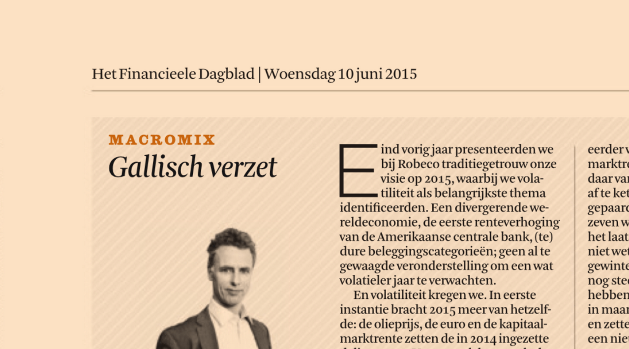 Eind vorig jaar presenteerden we bij Robeco traditiegetrouw onze visie op 2015, waarbij we volatiliteit als belangrijkste thema identificeerden. Een divergerende wereldeconomie, de eerste renteverhoging van de Amerikaanse centrale bank, (te) dure beleggingscategorieën; het leek op zich geen al te gewaagde veronderstelling om een wat volatieler jaar te verwachten.