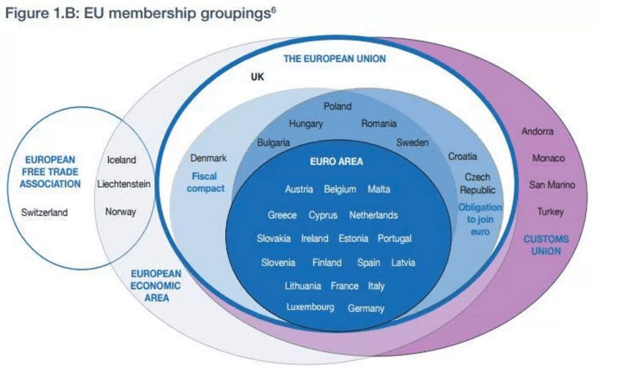 Nevertheless, I’d like to return briefly to the first graph, which – incidentally – is from HM Treasury’s report. As far as I’m concerned, this is the graph of the week because it gives a good picture of the vast number of unions, treaties and zones that actually exist within Europe. It’s just a shame that the BeNeLux is missing…