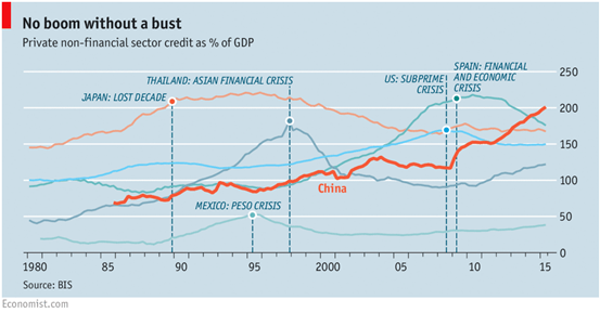 Today a great graph that puts rising Chinese debt into an international and historical perspective.