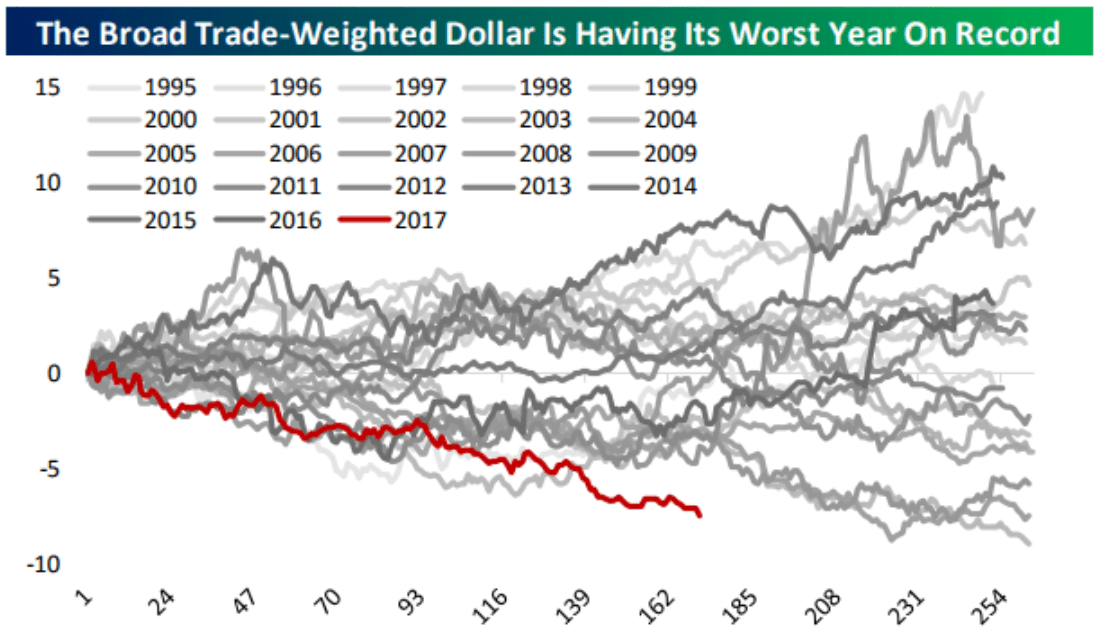 Disaster! Never before has the US dollar been as weak as it has this year! Panic! Or am I going overboard now?