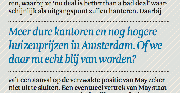 Meer dure kantoren en nog hogere huizenprijzen in Amsterdam, terwijl de agrarische gebieden juist een extra klap te verduren krijgen. Al met al zal een ‘no deal-uitkomst’ een verdere kloof binnen Nederland tot gevolg hebben. Of we daar nu echt blij van worden, vraag ik me sterk af.