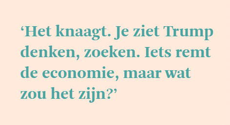 ‘Het knaagt. Je ziet Trump denken, zoeken. Iets remt de economie, maar wat zou het zijn?’