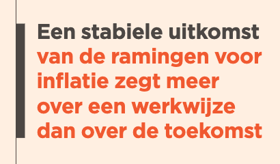 Nou kan het uiteraard zijn dat daar een gedegen analyse aan ten grondslag ligt, maar eigenlijk vermoed ik dat aan die langetermijnraming weinig of geen tijd is besteed. Mijn advies is dan ook dat je die stabiele uitkomst meer zegt over de werkwijze van degenen die de raming maakten, dan over de toekomstige hoogte van de inflatie.