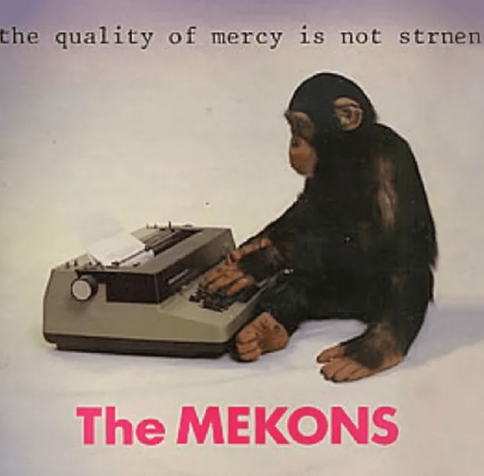 Zelf kende ik de stelling dankzij de hoes van de debuutelpee van de Mekons uit 1979: een foto van een jonge chimpansee achter een typemachine. De titel van de elpee, The Quality Of Mercy Is Not Strnen, geeft ook gelijk aan dat de kans op een typo met een random typende aap groot is.