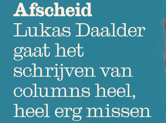 Tien jaar lang stuurde ik elke week een column, kerst- en paasedities – als er geen krant werd gedrukt – daargelaten. Nooit ziek geweest, nooit gedacht, waar moet ik het nu weer over hebben. Wende het? Nooit. Maar nu ik aan mijn laatste column bezig ben, weet ik één ding zeker en dat is dat ik het desondanks heel, heel erg ga missen. Na tien jaar is het inmiddels zo’n vast onderdeel van mijn weekritme geworden, dat het echte detoxen nu pas echt gaat beginnen. Heel veel dank aan de redactie dat ik hier al die tijd heb mogen schrijven en lezers voor de (soms ongevraagde) feedback. En ik wens mijn opvolger veel schrijfplezier. Misschien dat het went.